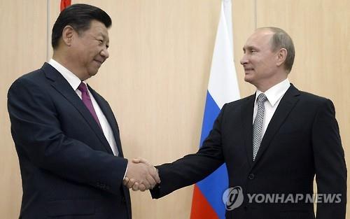 | △ '잘해봅시다~'. 러시아에서 열리고 있는 브릭스 정상회의에서 만나 반갑게 악수하고 있는 시진핑 중국 국가주석과 블라디미르 푸틴 러시아 대통령. (EPA=연합뉴스 자료사진) |
