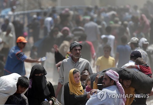 | △ (AP=연합뉴스 사진자료) 사진은 터키로 향하는 시리아 난민 |