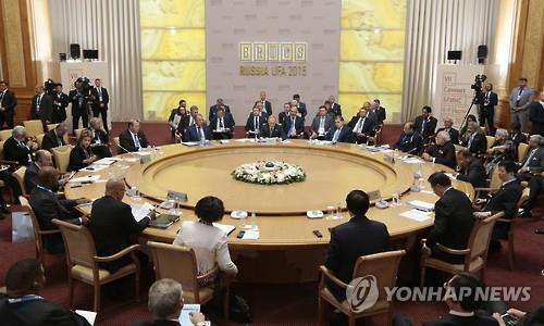 타스 통신 등에 따르면 브라질·러시아·인도·중국·남아프리카공화국 등 5개국 정상들은 이날 러시아 중부 도시 우파에서 이틀째 회의를 열고 산업·기술·금융 분야 등에 걸친 회원국 간 협력 방안을 논의하고, 서방 주도의 국제통화기금(IMF)·세계은행 등에 맞서기 위한 신개발은행 및 위기대응기금(외화 비축 풀) 창설 추진 과정을 점검했다.