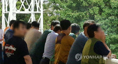 화장실과 매점을 이용하려고 줄을 섰다가도 코를 막으며 연기를 피하는 모습이다.