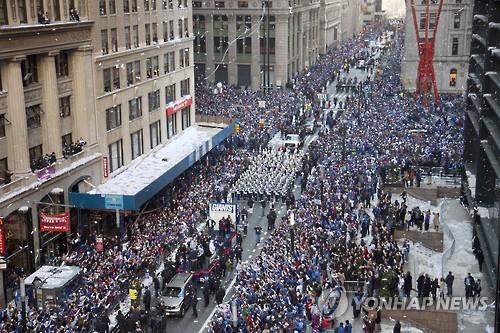 마칭밴드의 연주가 뒤따른 가운데 인도를 빽빽이 채운 시민들은 미국 국기를 흔들거나 환호성을 지르며 이들을 환영했다.