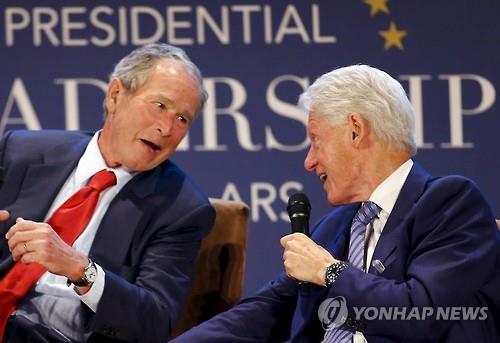 미국 일간 뉴욕타임스(NYT)는 조지 W 부시, 빌 클린턴 전 대통령이 지난 9일(현지시간) 댈러스에서 열린 행사에서 무대 위에 나란히 앉는 일이 벌어졌으나, 덕담이 오갔다고 전했다.
