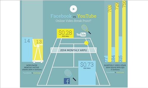 비디오 분야 시장조사기관 앰페어 어낼리시스에 따르면 페이스북 사용자들의 비디오 시청 건수는 2014년 3분기 770억 건, 4분기 1천840억 건에 이어 올해 1분기에는 3천150억 건에 이르렀다. 3개월마다 배증하는 초고속 성장이었다.