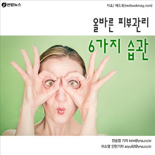 (서울=연합뉴스) 전승엽 기자·이소영 인턴기자 = 화장품을 아래 방향으로 문질러 바르면 피부가 쉽게 처질 수 있다고 한다. 피부를 관리하는 올바른 습관 6가지를 소개한다.