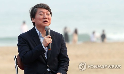 | △ 안철수 '피서객과 수다' (부산=연합뉴스) 조정호 기자 = 안철수 의원이 14일 부산 해운대해수욕장에서 새정치민주연합 부산시당 산하 오륙도연구소가 마련한 '소통과 참여의 정책 서머페스티벌'에 참석, 사회자의 질문에 답하고 있다. |