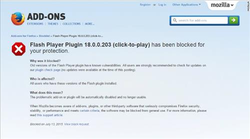 이에 따라 파이어폭스 사용자들은 플래시 플러그인을 설치할 수 없게 됐으며, 이미 브라우저에 설치된 플래시 플러그인도 쓸 수 없게 됐다.