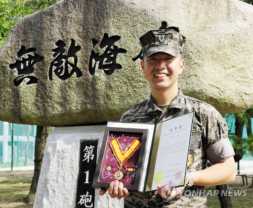 | △ '헌혈 105회' 해병대 박 준 대위 (포항=연합뉴스) 포항 해병대 1사단에 근무하는 박 준 대위가 100회가 넘는 헌혈과 꾸준한 봉사활동으로 이웃사랑을 실천해 화제가 되고 있다. 2015.7.15 << 해병대 1사단 >> shlim@yna.co.kr |