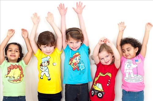 | △ 여자아이들 옷에 전통적으로 남자아이들 관심사로 간주되는 공룡, 야구, 우주인, 트럭 등의 그림을 그려넣은 여자아이 셔츠들. 출처: kickstarter.com |