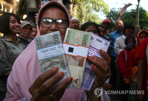 | △ 동남아시아에서 대표적으로 약세를 보이고 있는 인도네시아 루피아 화폐.(AFP=연합뉴스) |