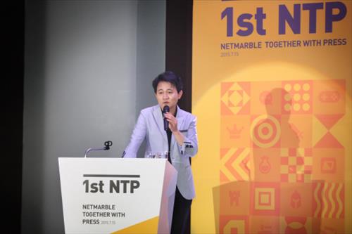 15일 오후 서울 구로구 넷마블 사옥에서 열린 넷마블게임즈(넷마블) 기자간담회 행사 '1st NTP'. 방준혁 넷마블 의장이 입에 가장 많이 올린 단어는 '글로벌' 그리고 '스피드'였다.