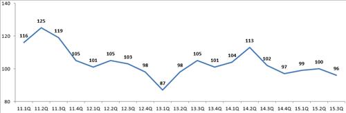 반면 백화점은 메르스 사태로 유커 등 해외관광객이 크게 줄고 방문객 수 정상화까지 다소 시일이 걸릴 것으로 예상되면서 지수가 전분기 104에서 90으로 크게 떨어졌다.