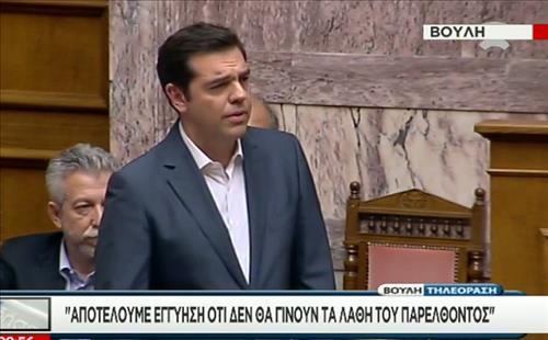 알렉시스 치프라스 총리는 표결에 앞선 연설에서 "동의할 수 없는 협상안에 합의하는 것과 무질서한 채무불이행(디폴트), 볼프강 쇼이블레(독일 재무장관)의 계획인 그렉시트(Grexit) 중에서 선택해야 했다"며 찬성표를 호소했다.
