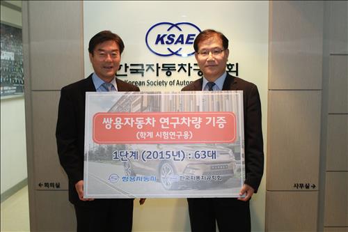 (서울=연합뉴스) 고웅석 기자 = 쌍용차[003620]는 자동차산업 연구인력 양성과 정비기술 저변 확대를 위해 한국자동차공학회에 연구·교육용 시험차량 63대를 기증했다고 16일 밝혔다.