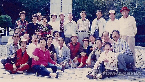 | △ 아흔 은사 모시고 추억의 졸업식 여는 여든 제자들 (울산=연합뉴스) 이상현 기자 = 18일 모교인 울산시 북구 농소초등학교에서 아흔이 넘은 은사인 이병직(91) 전 울산교육장을 모시고 추억의 졸업식을 여는 이 학교 21회 졸업생들. 이들은 졸업한 지 66년이 되는 여든이 넘은 제자들이다. 동기회 야유회 기념촬영 모습. 2015.7.16 leeyoo@yna.co.kr |