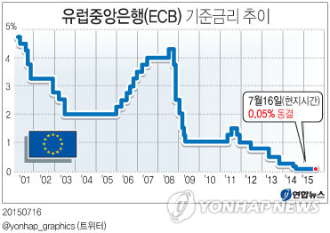 ECB는 지난 1월 국채 매입을 통한 전면적 양적완화 정책 시행 계획을 발표하면서 일정 기간 현행 금리를 유지하겠다고 예고했다.