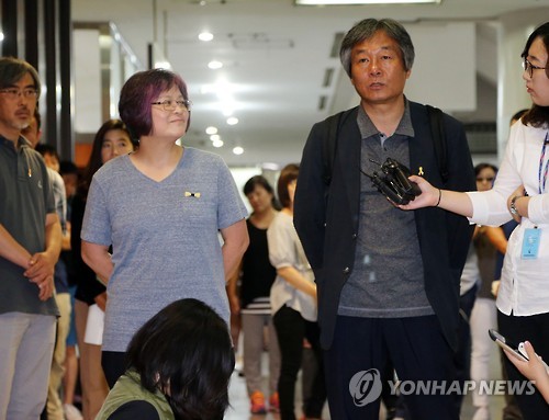 | △ 질문에 답하는 4.16연대 박래군, 김혜진 위원 (서울=연합뉴스) 최재구 기자 = 4.16추모집회를 주도한 혐의로 사전구속영장이 신청된 박래군 상임위원과 김혜진 운영위원이 16일 영장실질심사를 받기위해 서초구 서울중앙지법으로 들어서며 기자의 질문에 답하고 있다. jjaeck9@yna.co.kr |