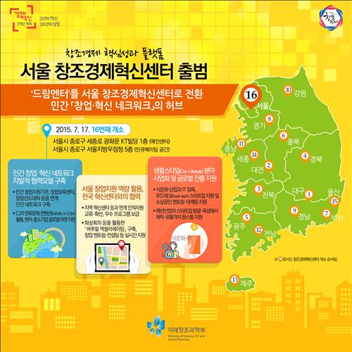 미래창조과학부와 서울시, CJ그룹은 17일 광화문 KT빌딩의 옛 드림엔터에서 전국 16번째 혁신센터인 서울창조경제혁신센터를 개소하고 본격적인 가동에 들어갔다.