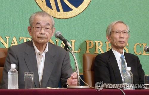 | △ 오누마 야스아키(大沼保昭, 오른쪽) 일본 메이지(明治)대 특임교수 등이 17일 일본 도쿄도 소재 일본기자클럽에서 기자회견을 하고 있다. (교도=연합뉴스) |