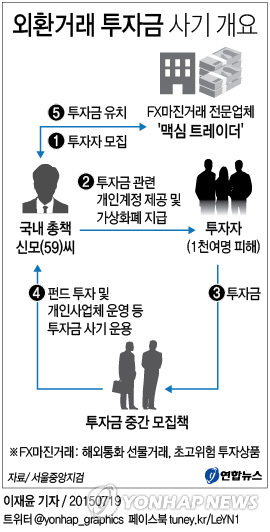 검찰에 따르면 신씨 등은 FX마진거래 전문업체 '맥심 트레이더'에 투자해 매달 원금의 3∼8%를 배당하겠다며 작년 2월부터 올해 4월까지 1천여명에게서 투자금 650여억원을 유치한 혐의를 받고 있다.