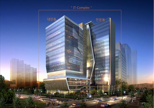 IT-콤플렉스는 연면적 8만 1천969㎡에 지하 7층∼지상 21층 짜리 전문동과 17층짜리 대민동 등 2개 복합건축물로 건립된다.