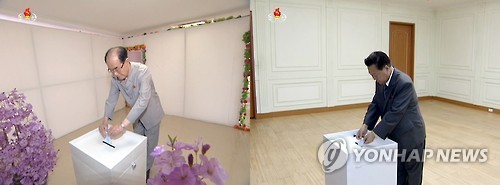 김영남 최고인민회의 상임위원장과 최룡해 노동당 비서 등 당과 국가의 간부들도 투표에 나섰다.