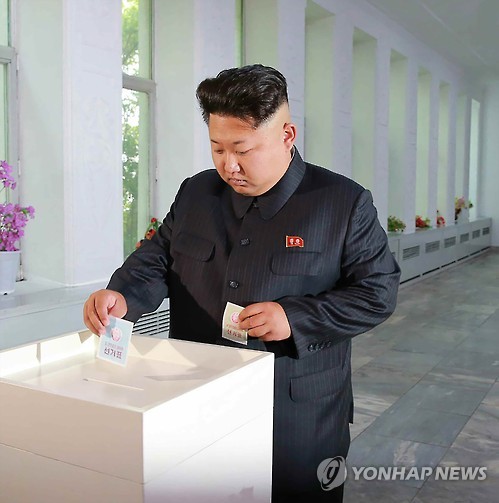 | △ 북한 김정은, 지방의회 대의원 선거서 투표 (서울=연합뉴스) 김정은 북한 국방위원회 제1위원장이 19일 열린 우리의 지방의회 격인 도·시·군 인민회의 대의원 선거 투표를 하고 대의원 후보자들과 만나 그간 노고도 치하했다고 노동신문이 20일 보도했다. |