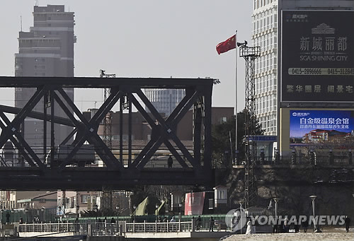 | △ 중국 단둥을 출발한 트럭이 북한 신의주와 이어지는 압록강 철교 위를 지나가고 있다. (AP=연합뉴스 자료사진) |