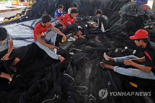 | △ 태국 남부 나라티왓 지방 항구에서 어민들이 그물을 손질하고 있다.(AFP=연합뉴스 자료사진) |