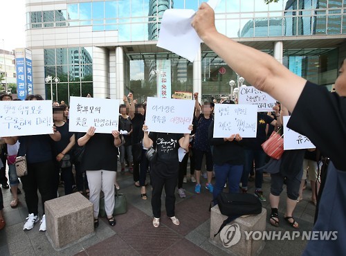 | △ 3일 오후 서울 광화문 동화면세점 앞에서 열린 '미림여고 자사고 유지 촉구를 위한 학부모 기자회견'에서 학부모들이 일반고 전환 반대 등의 구호를 외치고 있다. (연합뉴스 자료사진) |