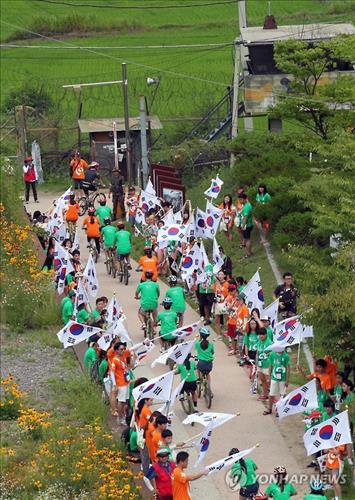 (서울=연합뉴스) 신유리 기자 = 재외동포 청소년 400여 명이 한반도 평화를 기원하며 비무장지대(DMZ) 일대를 자전거로 달리는 행사가 열렸다.