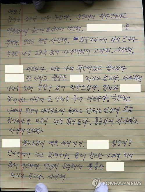 "짊어질 짐들이 너무 무겁다" 가족에게 남긴 유서 추가 공개