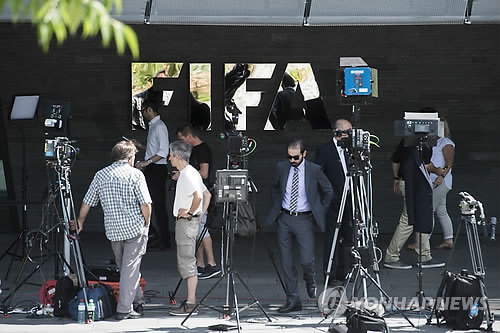 | △ FIFA 회장 선거일 결정했나? (취리히 AP=연합뉴스) 20일(현지시각) 스위스 취리히 국제축구연맹(피파·FIFA) 본부 앞에서 기자들이 피파 집행위원회 회의 결과를 밝힐 기자회견을 기다리고 있다. 피파 집행위원회는 회장단 선거일을 결정하기 위해 소집됐다. |