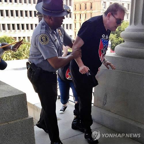 KKK는 인종주의 논란에 휩싸인 남부연합기가 최근 사우스캐롤라이나 주의회의 결정으로 공공장소에서 퇴출당하자 전날 퇴출 반대집회를 열었다.