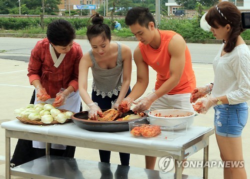 이들은 한류한국음식문화연구원 김수진 원장의 도움을 받아 직접 배추를 씻고 소금물에 간을 한 뒤 버무리는 모든 과정을 체험했다.