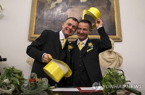 | △ 이탈리아는 동성결혼을 인정하지 않고 있지만 로마 등 일부 지방정부는 해외에서 이뤄진 동성커플의 결혼을 인정해주고 있다. (EPA=연합뉴스 자료사진) |
