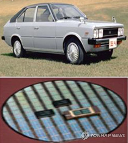 | △ 광복 70년 최고 과학기술에 포니자동차와 반도체 (서울=연합뉴스) 미래창조과학부가 '광복 70주년 과학기술 대표성과 70선'에 대한 국민 선호도 조사 결과 우리 국민은 국산 자동차 1호 '포니(윗쪽)'와 D램 메모리반도체(아래), 경부고속도로 등을 광복 이후 가장 대표적인 과학기술 성과로 생각하고 있는 것으로 나타났다. (미래창조과학부 제공) |