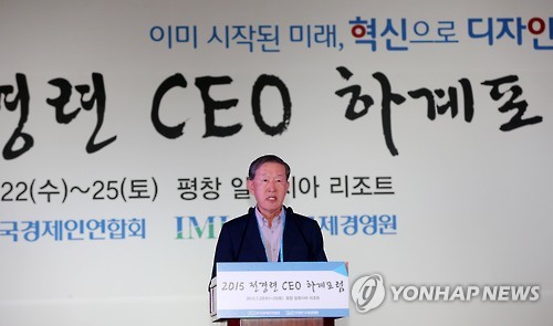 허창수 전경련 회장은 개회사에서 "지금 우리 경제가 많이 어렵다. 수출 부진과 메르스 여파로 내수 침체까지 깊어지고 있다. 미래의 뚜렷한 먹거리 산업이 보이지 않는 가운데 저출산과 고령화가 급속히 진행되고 있다"면서 "지금이야말로 미래를 위해 새로운 준비가 필요한 시점"이라고 밝혔다.