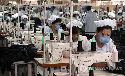 | △ 개성공단의 한 의류업체에서 일하는 북한 여성근로자들 모습. (연합뉴스 자료사진) |