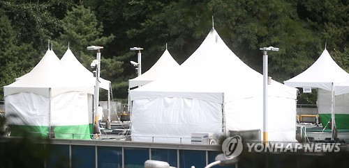 | △ 한산한 메르스 임시 진료소 (서울=연합뉴스) 박정헌 기자 = 중동호흡기증후군(메르스) 환자 발생으로 부분 폐쇄됐던 서울 강남구 삼성서울병원이 집중관리병원에서 해제되기 전 지난 17일 메르스 임시 진료소가 한산한 모습을 보이고 있다. |
