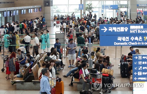 | △ 북적이는 인천공항 출국장 (영종도=연합뉴스) 김주성 기자 = 23일 오전 인천공항 출국장이 본격적인 여름 휴가철을 맞아 해외로 여행을 떠나는 인파로 붐비고 있다. 2015.7.23 utzza@yna.co.kr |