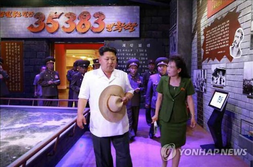| △ "52일간 3만5천383명 학살" 북한 '미군 만행 전시' 박물관 (서울=연합뉴스) 김정은 북한 국방위원회 제1위원장이 6·25전쟁 당시 황해남도 신천에서 벌어진 미군의 만행을 전시했다는 신천박물관을 찾았다고 노동신문이 23일 보도했다. 사진은 노동신문에 실린 김정은 제1위원장의 모습. 모자를 벗고 박물관을 둘러보는 김정은 제1위원장 뒤로 '52일간 3만5천383명 학살'이라는 문구가 크게 적혀 있다. |