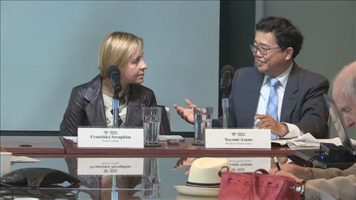토론자로 나선 프랜지스카 세라핌 보스턴대학 역사학과 부교수도 악화된 한일 관계와 관련, "미국 정부나 의회가 보편 인권을 옹호한다고 밝히거나 일본 사죄 결의안이나 통과시킬 게 아니라, 전쟁 중 또는 전후 대일 정책 등을 고려한 미국의 역사적 책임을 직시해야 한다"고 지적했다.
