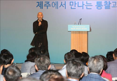 | △ 박서원 오리콤 크리에이티브 총괄부사장이 24일 제주신라호텔 콘퍼런스룸에서 개최된 대한상공회의소 제주포럼에서 강연하고 있다. |