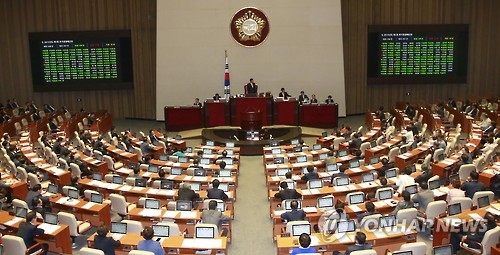| △ 2015년도 추가경정예산안 통과 (서울=연합뉴스) 이상학 기자 = 24일 국회에서 열린 제335회 국회(임시회) 제2차 본회의에서 2015년도 제1회 추가경정예산안이 통과되고 있다. leesh@yna.co.kr |