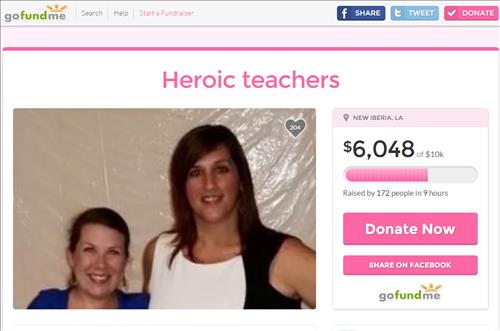 폭스 뉴스는 루이지애나 주 교사협회의 이베리아 지부장인 캐미 모린이 온라인 성금 모금 사이트인 '고펀드미'에 두 교사의 의료비 지원을 호소하는 창구를 개설했다고 전했다.