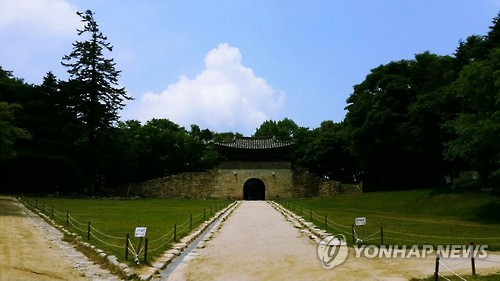 | △ <길따라 멋따라> 문경새재 1관문 (문경=연합뉴스) 손대성 기자 = 경북 문경새재를 관통하는 길에는 3개의 성곽이 있다. 새재 기슭에서 정상까지 차례로 1∼3관문이란 이름이 붙어 있다. 사진은 문경새재 1관문인 주흘관. 2015.7.25 sds123@yna.co.kr |