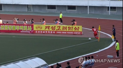 월드컵축구 예선 경기장에 북한기업 광고판 등장