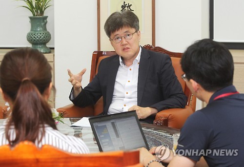 | △ 인터뷰하는 유경준 통계청장 (대전=연합뉴스) 이재림 기자 = 유경준 통계청장이 지난 24일 정부대전청사 통계청장실에서 열린 연합뉴스와 단독인터뷰에서 "계층 간 이동을 파악할 수 있는 새로운 통계를 만들겠다"는 업무구상을 밝히고 있다. 2015.7.26 walden@yna.co.kr |