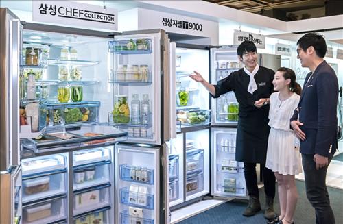 (서울=연합뉴스) 김연숙 기자 = 삼성전자[005930]는 25∼26일 서울 그랜드하얏트호텔에서 열린 '2015 F/W 와이즈웨딩 스타일링페어'에서 슈퍼 프리미엄 냉장고 셰프컬렉션 등 프리미엄 혼수가전을 선보였다고 26일 밝혔다.
