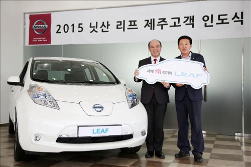 이번 전달식은 지난 3월 '2015년도 전기자동차 보급사업 공모' 당첨 고객들을 대상으로 이뤄졌다. 한국닛산은 앞으로 몇 달간 올해 제주 공모 당첨자들에게 차례로 리프를 전달할 계획이다.